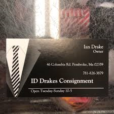 ID DRAKES CONSIGNMENT 46 COLUMBIA RD. PEMBROKE, MA TUESDAY - THURSDAY 10-5